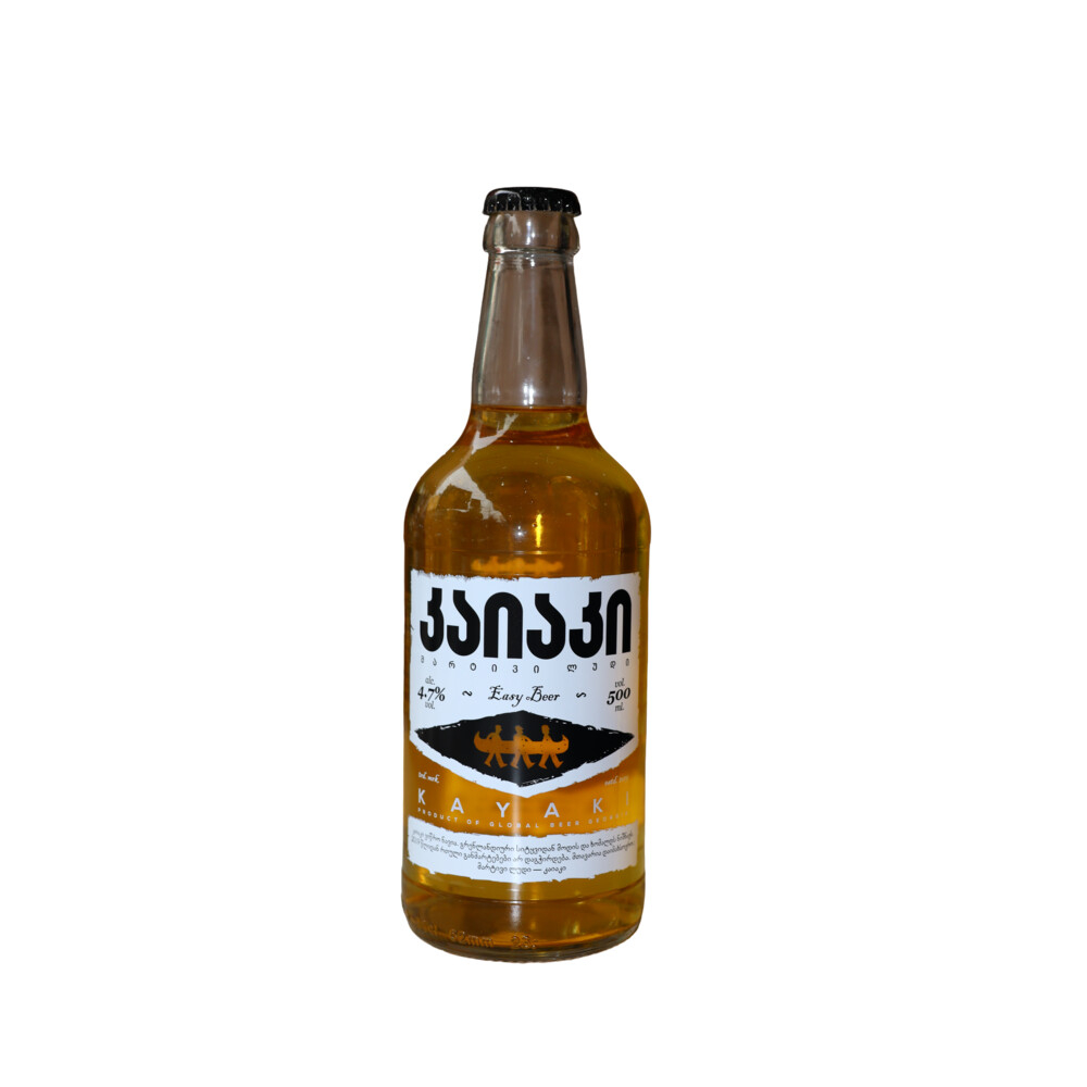 Это Kayaki (კაიაკი) — популярное грузинское пиво, которое позиционируется как «простое» и современное решение для любого случая. Этот светлый фильтрованный лагер от компании Global Beer Georgia воплощает дух свободы и легкости. ✨ Портрет напитка: Цвет: Светло-золотистый и кристально чистый, с аккуратной белой пеной. Аромат: Свежий и деликатный, с выраженными нотками травянистого хмеля, дополненными мягкими солодовыми и едва уловимыми кукурузными оттенками. Вкус: Исключительно питкий и освежающий. Легкое «тело» напитка раскрывается тонкой солодовой сладостью и завершается мягкой хмелевой горчинкой с приятной кислинкой в послевкусии. Характер: Это классический европейский лагер крепостью 4.7%. Пиво создается на основе чистейшей родниковой воды и качественного ячменного солода, что делает его вкус честным и аутентичным. Как лучше насладиться: Благодаря своему легкому нраву, Kayaki — идеальный компаньон для шумных застолий с хинкали или отдыха на природе. Лучше всего подавать его сильно охлажденным, чтобы полностью ощутить его бодрящий эффект.
