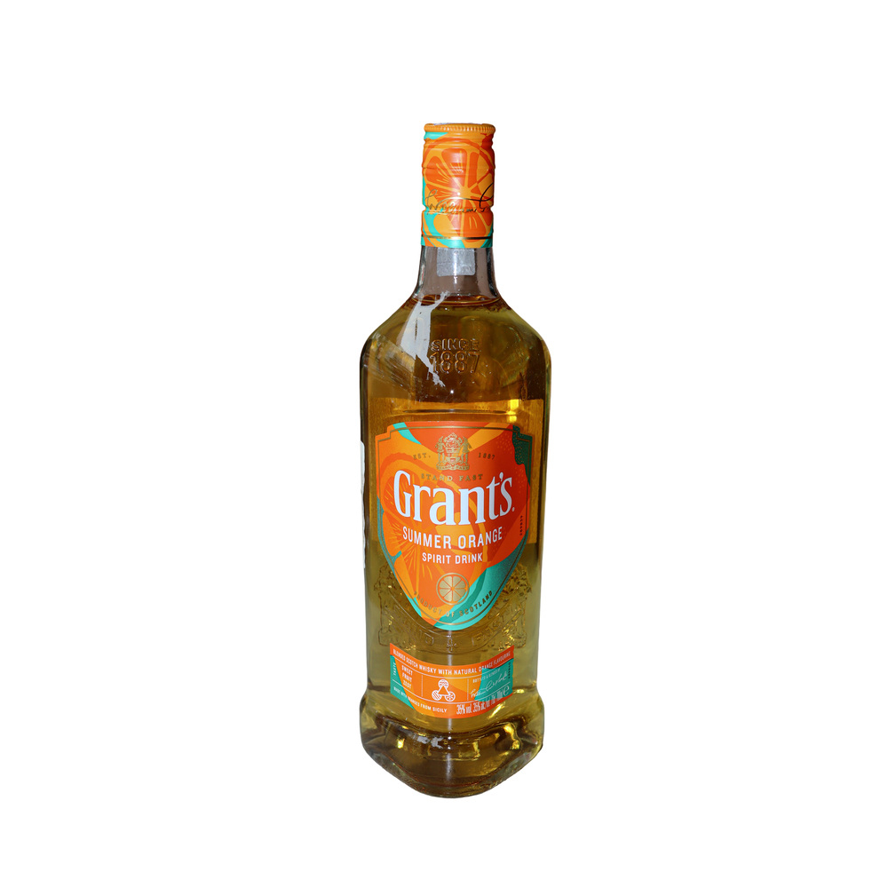 A bright and sunny drink based on Scottish whiskey — Grant’s Summer Orange. This modern "spirit drink" is created for those seeking summer freshness in classic Scottish whiskey. ✨ Drink portrait: Color: Glowing golden-orange, reminiscent of a sunset on a hot summer day. Aroma: A true explosion of citrus freshness. The bouquet is dominated by a juicy Sicilian orange note, elegantly intertwined with the classic honeyed malt notes of Grant’s whiskey. Taste: Exceptionally smooth and cheerful. The prominent bright orange zest and natural fruity sweetness seamlessly transition into a warming aftertaste with a hint of oak. Character: A light and friendly drink with an alcohol content of 35%. It is less strong than classic whiskey, making it as refreshing and enjoyable as possible.