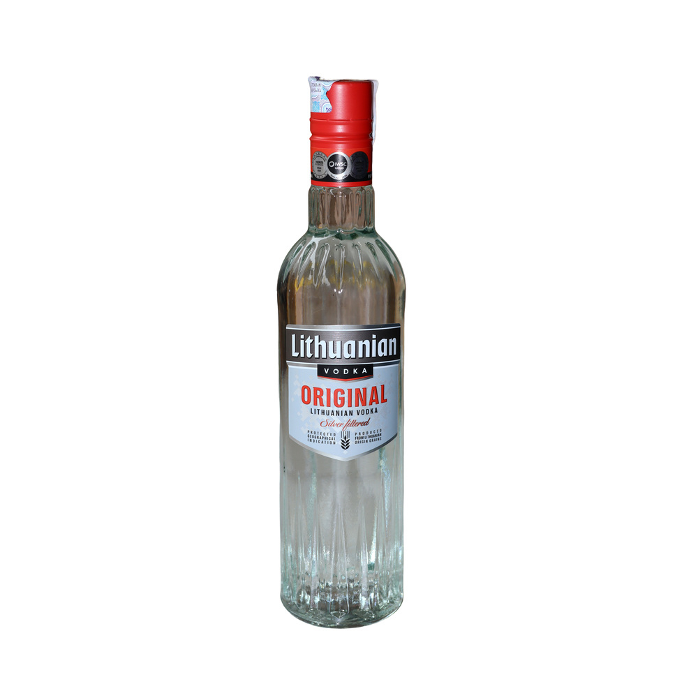 This is Lithuanian Original Vodka — a strict classic with a northern character. The transparent bottle with embossed glass seems to play with cold light, emphasizing the purity of the drink. The contrasting label with red accents adds energy and confidence, while the bright cap completes the look — simple, yet memorable.